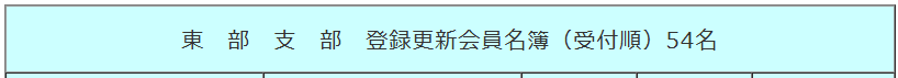 東部 50/54名、中部 36/42名、西部 35/38名の方が手続き終了、退会/休会を除き残り8名は未処理です。